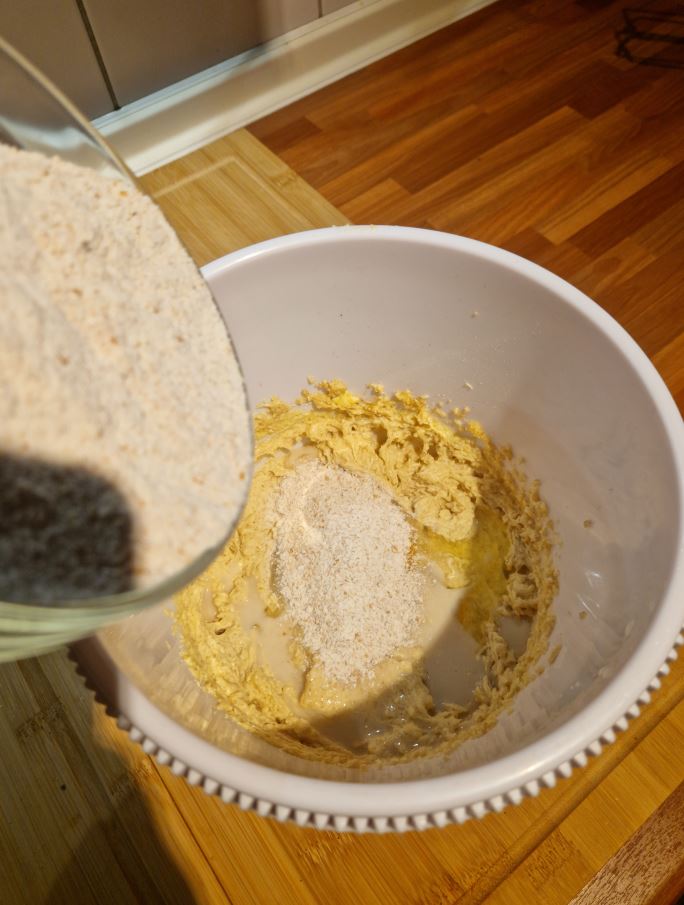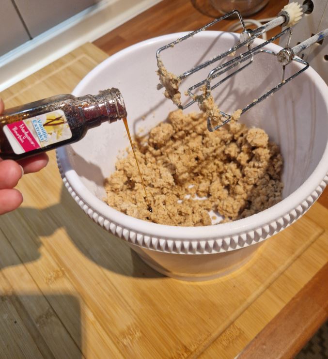 Um den Plätzchen den weihnachtlichen Hauch zu verleihen, kannst du etwas Vanilleextrakt, Lebkuchengewürz oder Zimt hinzugeben.